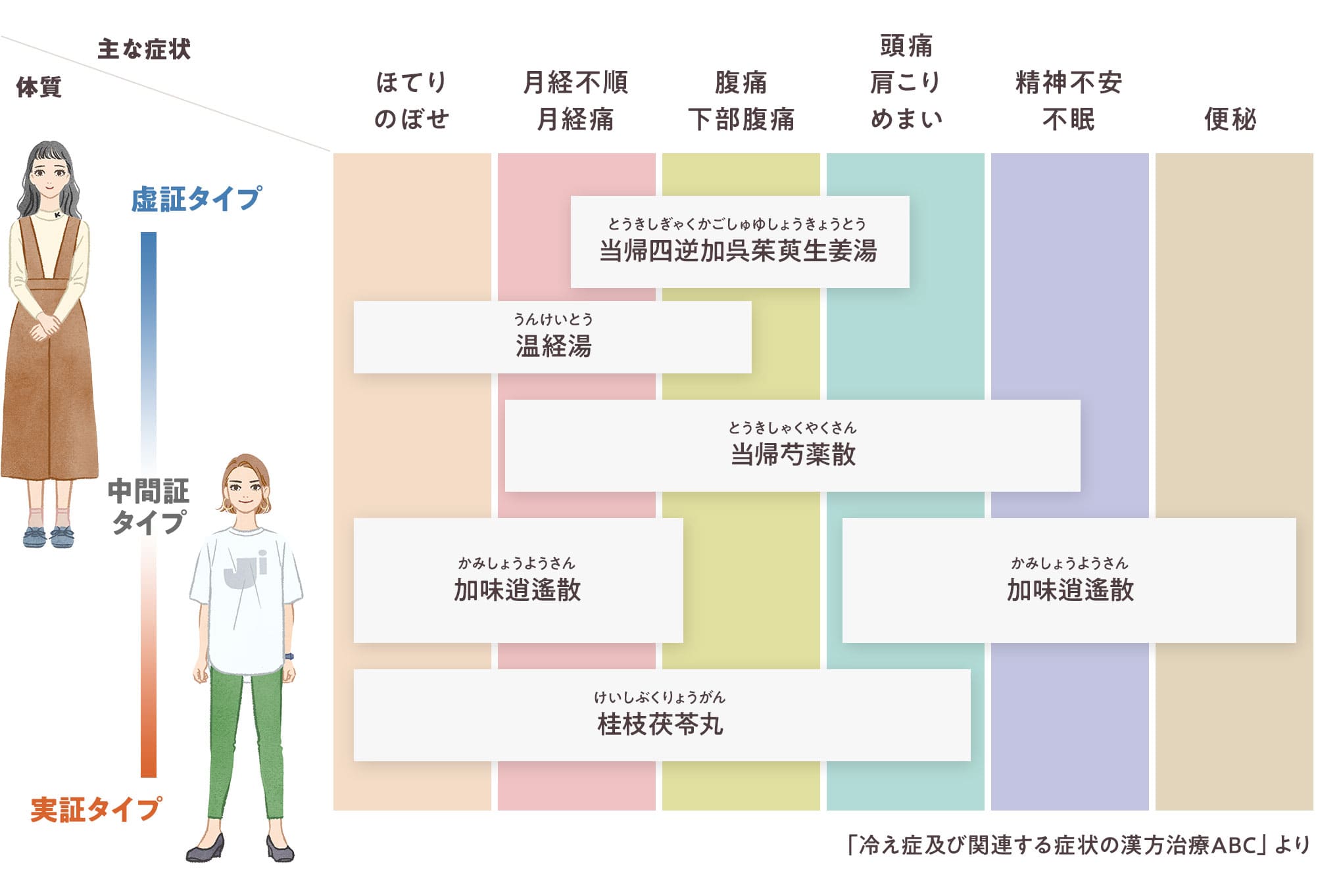 - 病態やその人の体質に合わせて、さまざまな漢方薬が用いられる