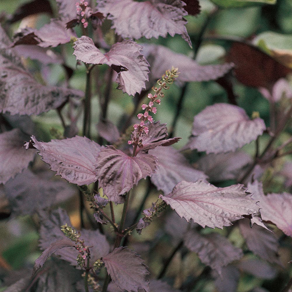 シソ Perilla frutescens Britton var. crispa W. Deane(Labiatae)の葉及び枝先
