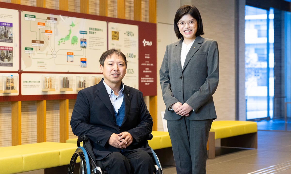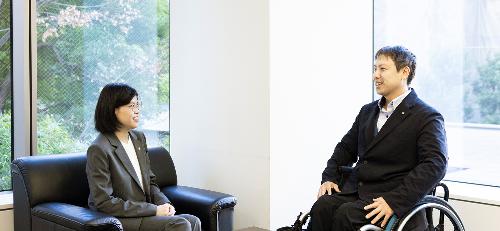 障がいのある社員2人に、自分らしさを活かして働く中でツムラを選んだ理由や想い、現在の業務や働きがいについて語り合ってもらいました。